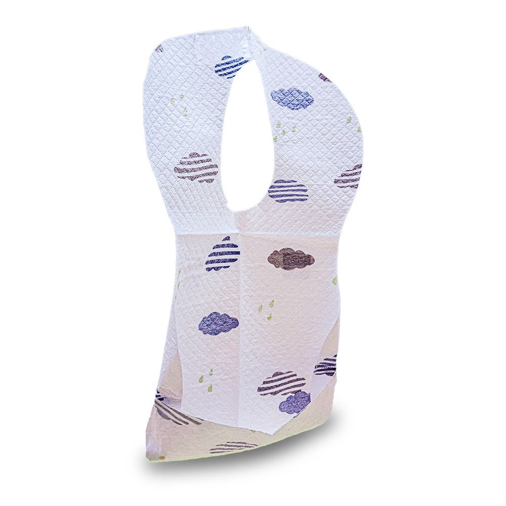 Bavetele de unica folosinta, destinate utilizarii la copiii cu varsta peste 4 luni, sunt potrivite pentru utilizarea acasa sau in calatorii, cu suprafata impermeabila si buzunar mare pentru protejarea hainelor. Bavetele au benzi adezive și răieturi speciale pentru a fixa și regla cât mai bine bavete pe hainele copilului