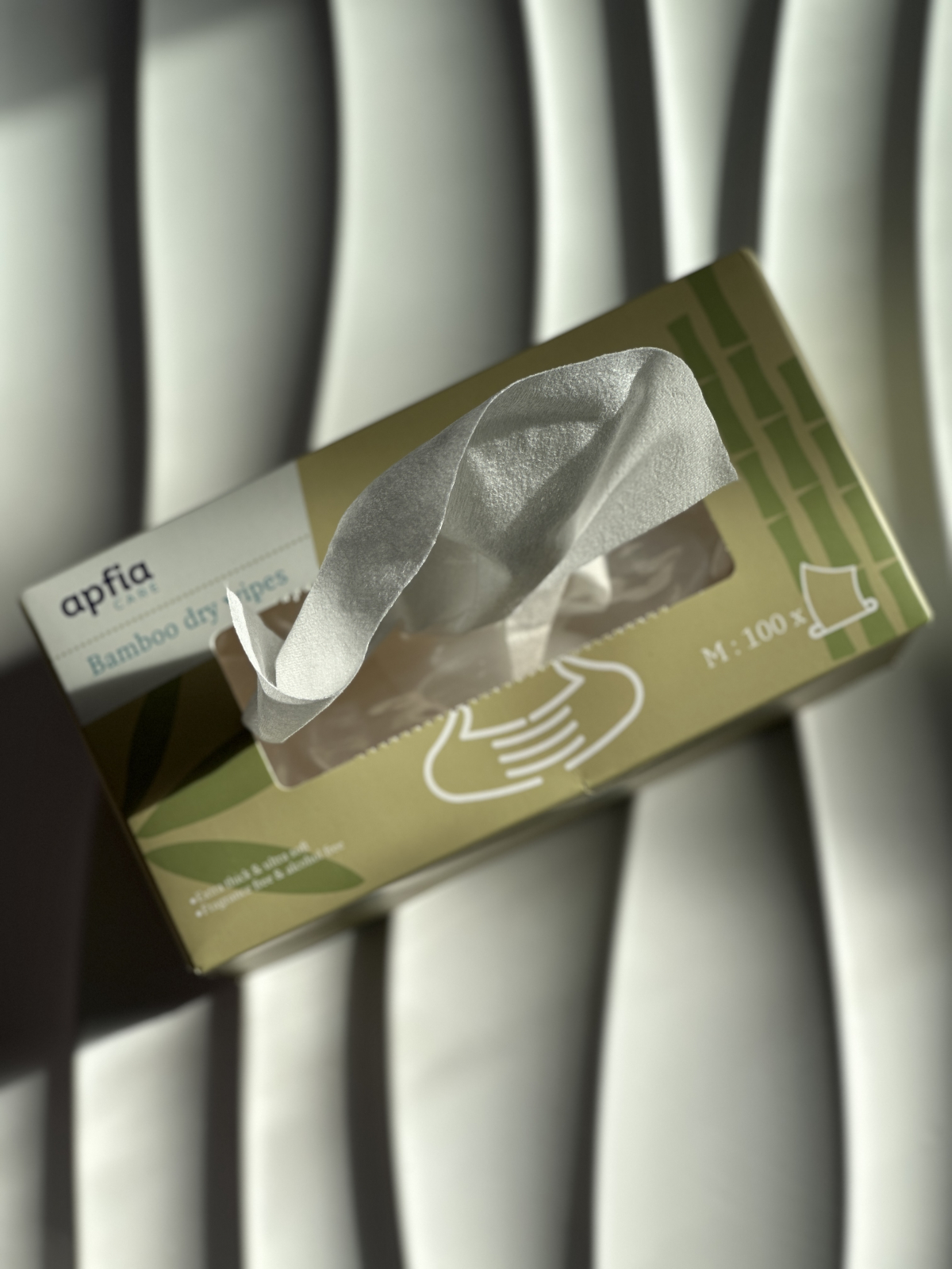 Servetelele uscate din bambus Apfia Care sunt realizate din material hipoalergenic. In aceasta cutie sunt 100 de servetele super moi si puternice pentru a mentine curata si uscata pielea delicata a bebelusului tau. Servetelele din bambus Apfia Care sunt foarte subtiri si ultra moi, potrivite pentru intreaga familie, de la cei mai mici la cei mai mari.